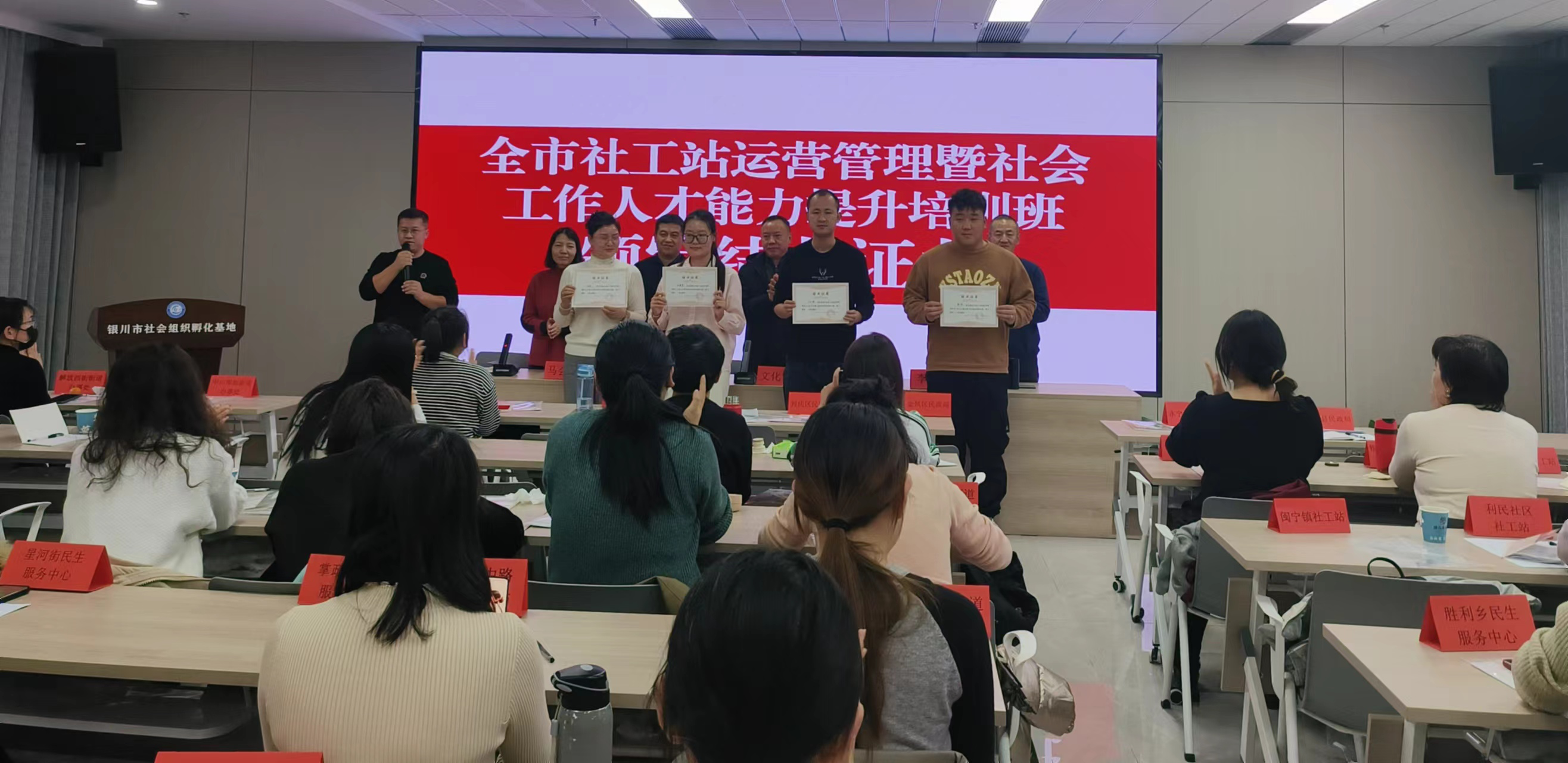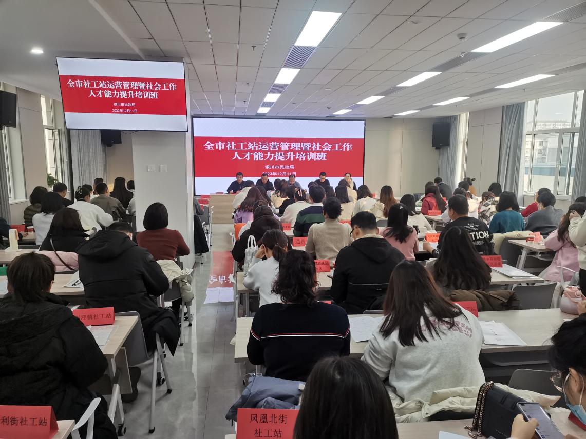 为深入学习贯彻习近平新时代中国特色社会主义思想,全面落实中央及区市人才工作会议精神,进一步创新基层社会治理,推进镇街社工站实体化运营,让更多的社工人才能够充分发挥作用,实现自身价值,银川市民政局主办、宁夏昊善社会工作发展服务中心承办的“银川市社工站运营管理暨社会工作人才能力提升培训班”于12月11日成功举办,来自各县(市)区民政局分管领导或负责人、乡镇(街道)社工站负责人、驻站社工,共计110人次参与此次培训。