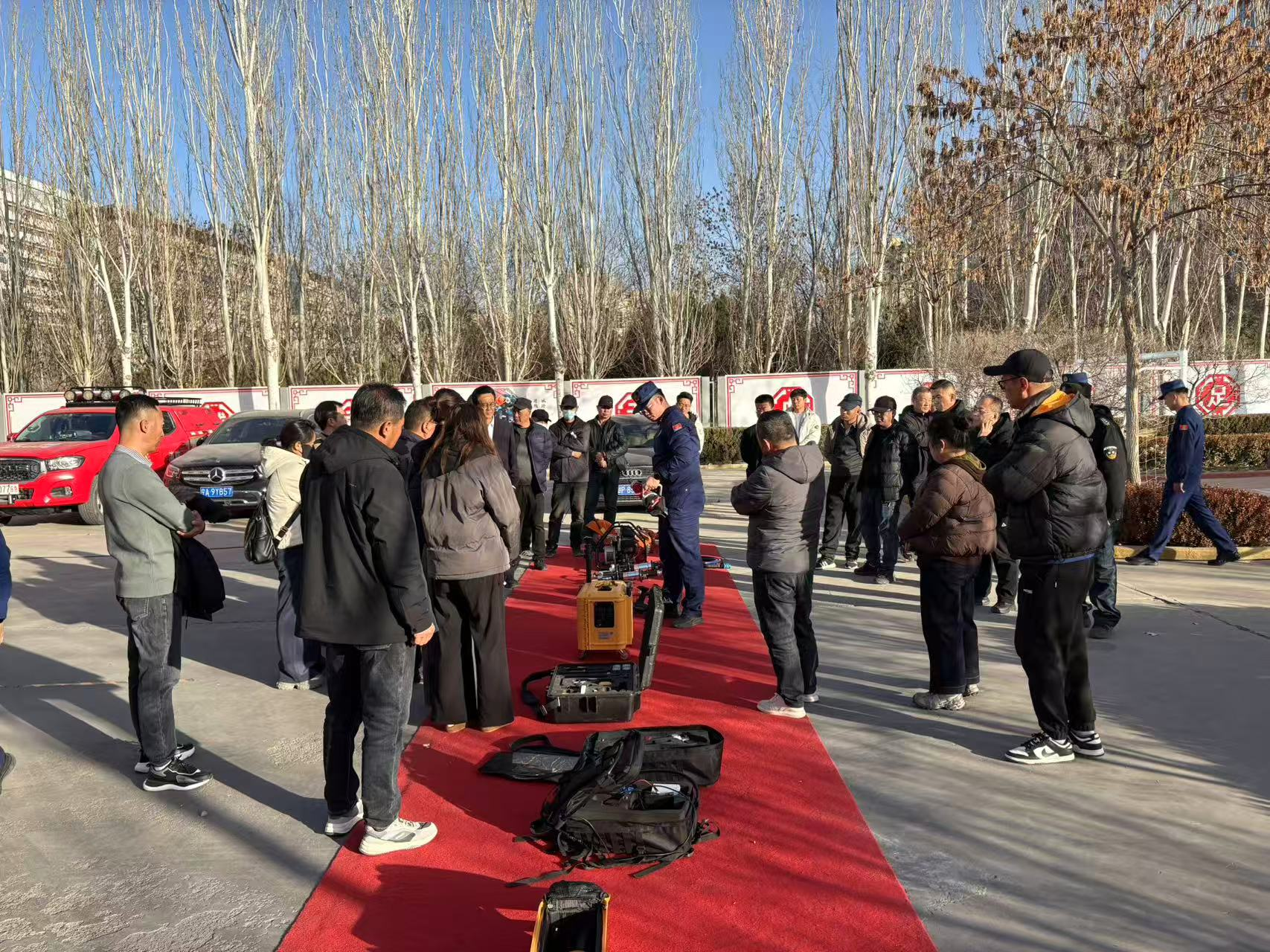 活动现场,消防员带领大家近距离参观了消防水罐车、抢险救援车等各类消防车辆,详细讲解了车辆的性能参数、适用场景及操作流程。结合殡葬服务机构祭祀用火多、易燃物品集中等行业特点,重点演示了空气呼吸器、消防服、破拆工具、灭火器等各类消防器材的正确使用方法和维护保养要点,现场指导参训人员进行实操练习,确保大家“学得会、用得上”。